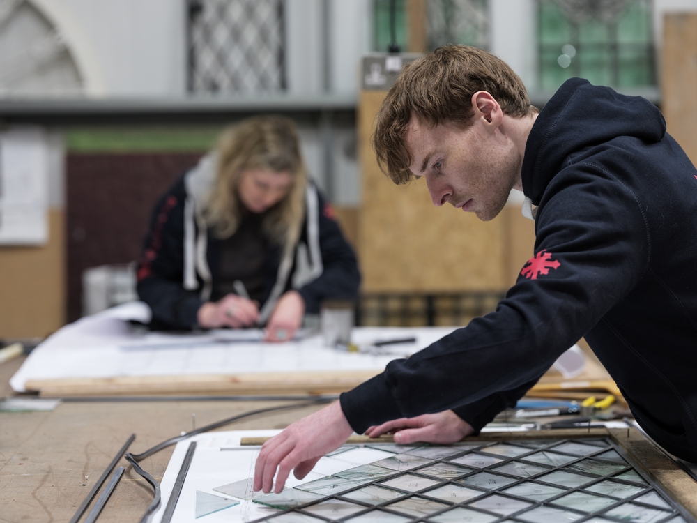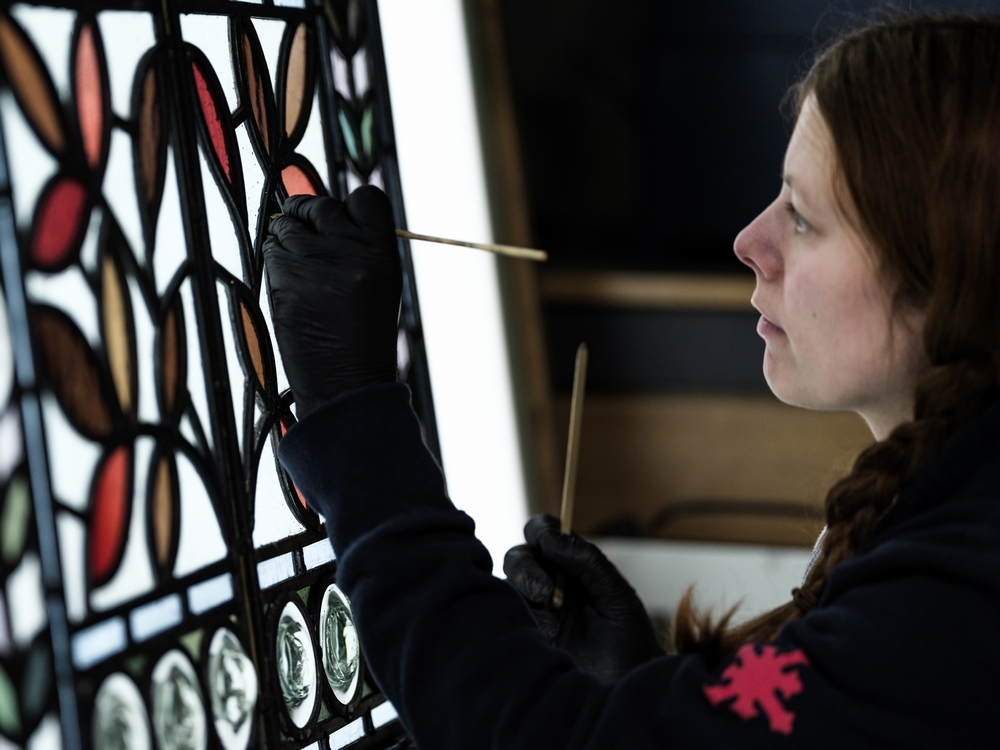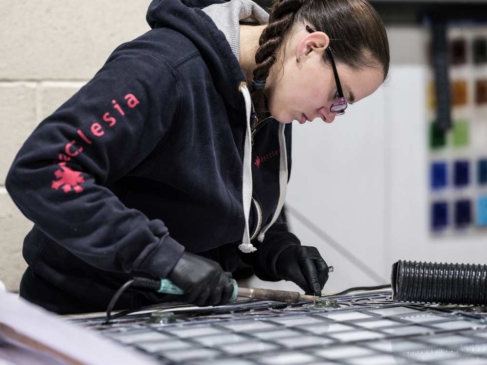 After completing extensive survey work to report on condition and create an asset catalogue, removal of the enormous windows began in July 2021. The Recclesia Stained Glass studios in Chester and Manchester are both working on this project through 2021 and 2022, meticulously conserving every single section of glass, piece by tiny piece!