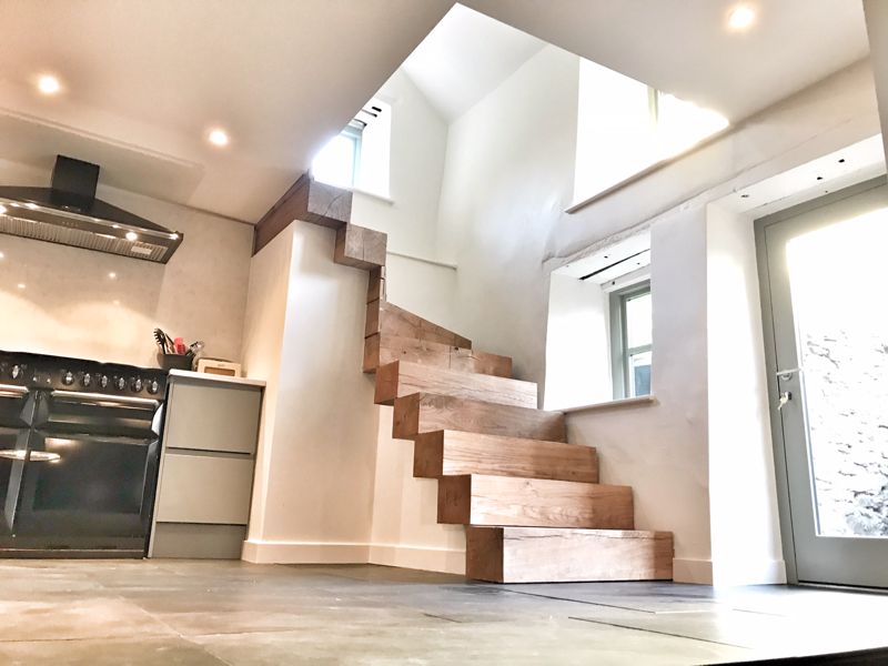 The scope of works included contractor-designed M&E installation, new limecrete-glapor floors with underfloor heating and natural slate finishes, new windows, doors, staircases and bespoke fitted furniture, insulation to roofs, masonry repairs and repointing using lime mortars throughout. With the exception of the M&E installation, all of the work was carried out in-house by Recclesia.